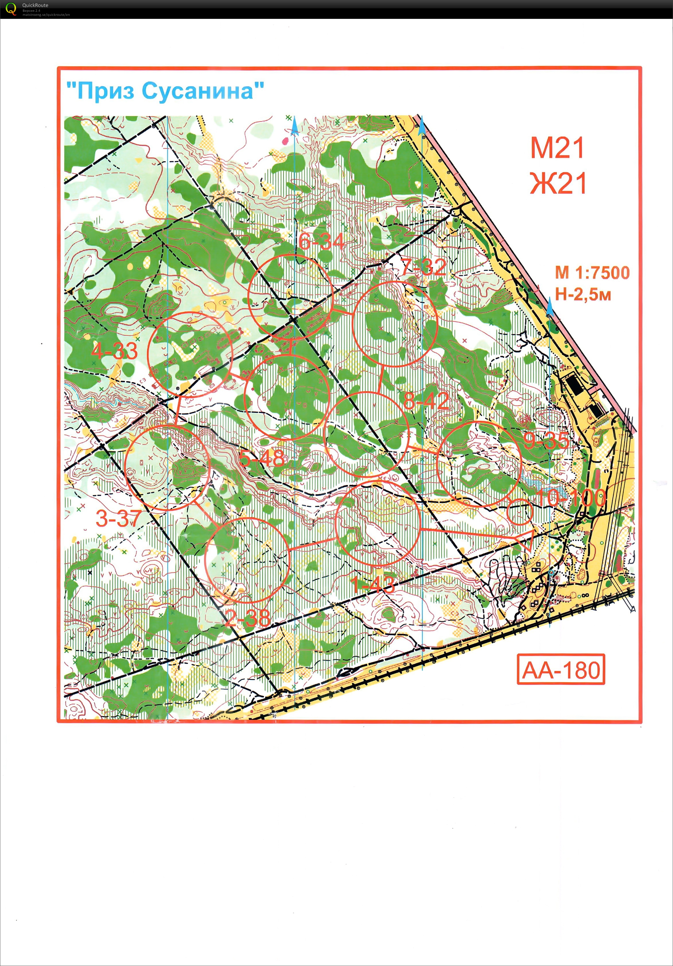 Формат «Сусанин»: на карте дистанции заданного направления с диаметром круга КП 2,5 см, КП может находится на любом ориентире в пределах круга.